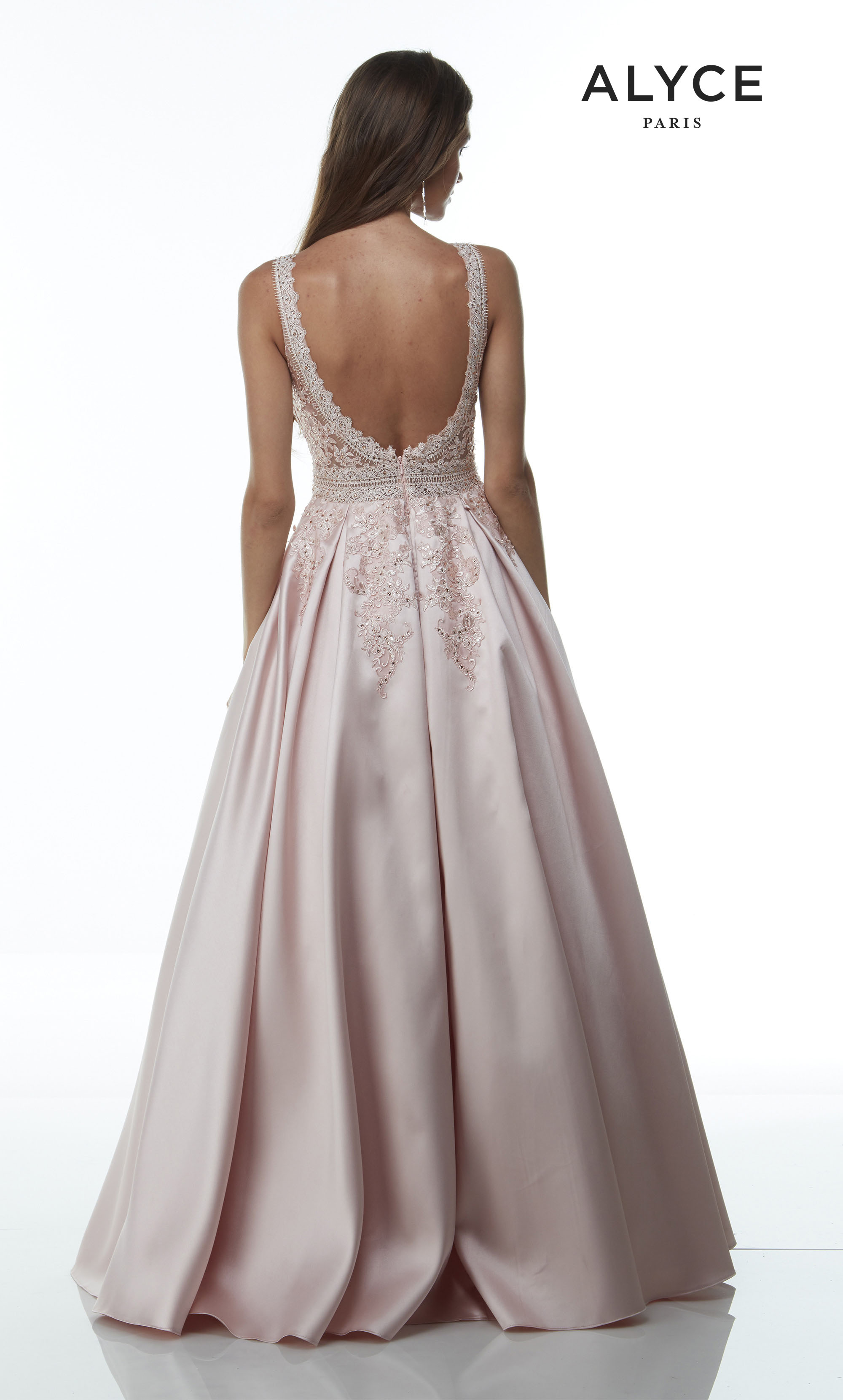 Svečana haljina Alyce Paris 61080 Elegantna svečana haljina u neznoj rozе (french pink) nijansi odiše romantikom i luksuzom. Gornji deo ukrašen je finim čipkanim detaljima i dubokim V izrezom koji naglašava ženstvenost, dok široke bretele pružaju dodatnu eleganciju. Donji deo haljine širi se u raskošnu A liniju sa bogatim satenskim padom koji daje kraljevski izgled. Otvorenija leđa dodatno naglašavaju sofisticiranost i čine ovu haljinu savršenim izborom za posebne prilike. Idealna je za maturske večeri, svečane događaje i glamurozne prilike. Boja: Roze (French pink) Veličina: 42 Cena: 74.000 din